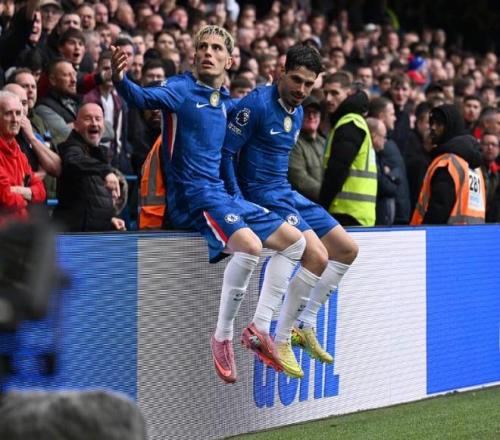 比赛开始后,切尔西立马打出了闪击战;第4分钟,桑切斯大脚长传,内托中圈推进观察后送出一脚精准斜塞,加纳乔左侧立马跟进接球节奏变化甩开穆杰莱后自信抽射近角,1:0!夏窗加盟切尔西后,加纳乔终于在自己的第7场比赛打进蓝军首球,他也再次复制曼联时期效仿C罗坐在广告牌上的庆祝动作。